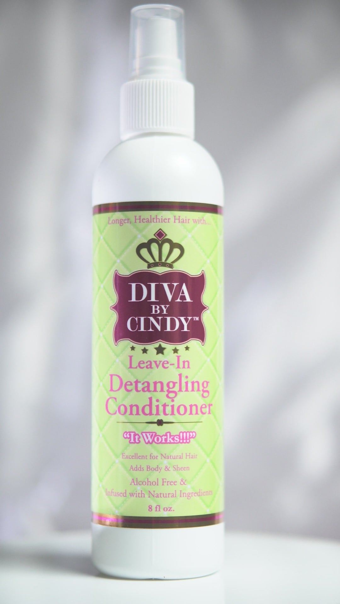 The DIVA BY CINDY Leave-In Detangler eliminates dryness, brittleness, and limpness; and is especially good on over processed, dull hair. Penetrates the hair shaft quickly while detangling and adding sheen making it excellent for fine, limp hair and ideal for wraps and roller sets.